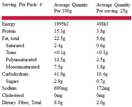 Made from Australian-grown ingredients to a traditional family recipe, this whole food snack is naturally high in protein, a good source of fibre, gluten-free, and vegan friendly with no added nasties.