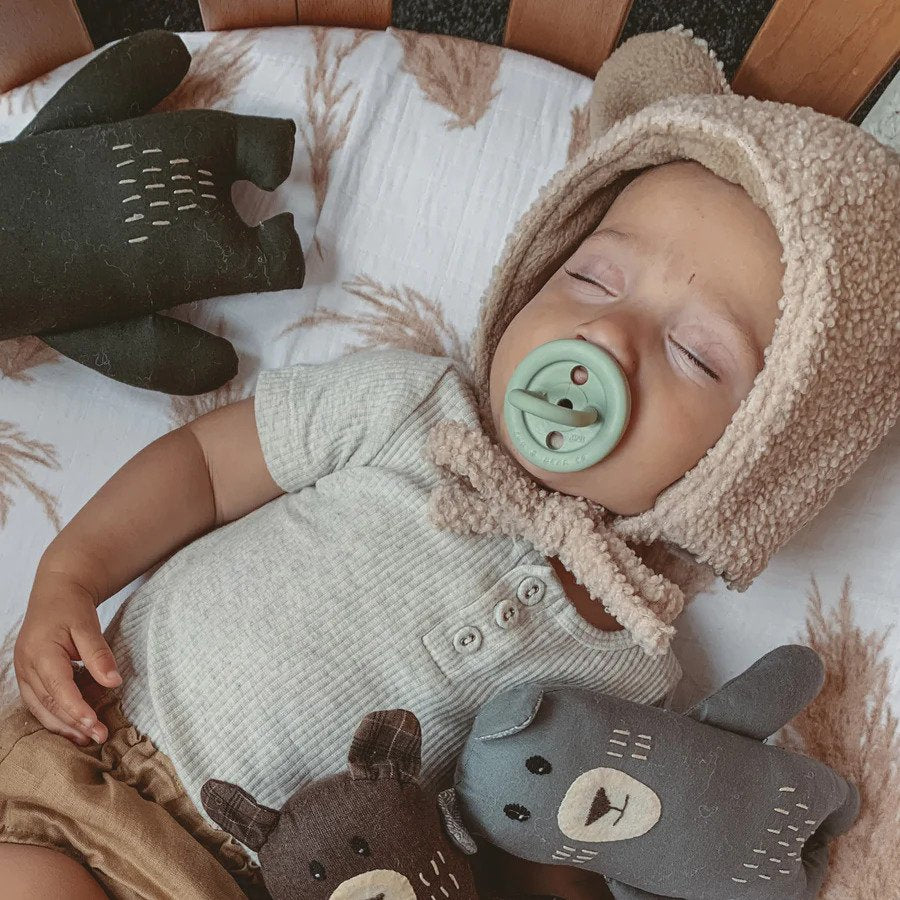 A grey-green resembling that of dried sage leaves, this sage green natural rubber dummy is perfectly paired with earthy tones, neutrals or even more sage.