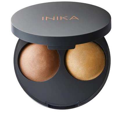 Create a sculpted effect with this bronzed contour powder and natural champagne highlight duo. INIKA Organic Baked Contour Duo is made from a 100% Natural, pure mineral formula free from fillers, parabens and talc.