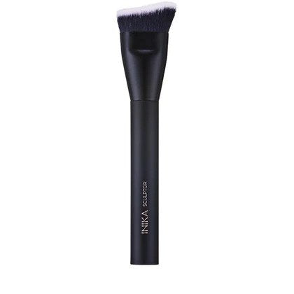 1. Gently press the top of your INIKA Organic Sculptor Brush into powder, or if you’re using a liquid, disperse a pea-sized amount onto the back of your hand and then pick it up by pressing the brush lightly into the product.