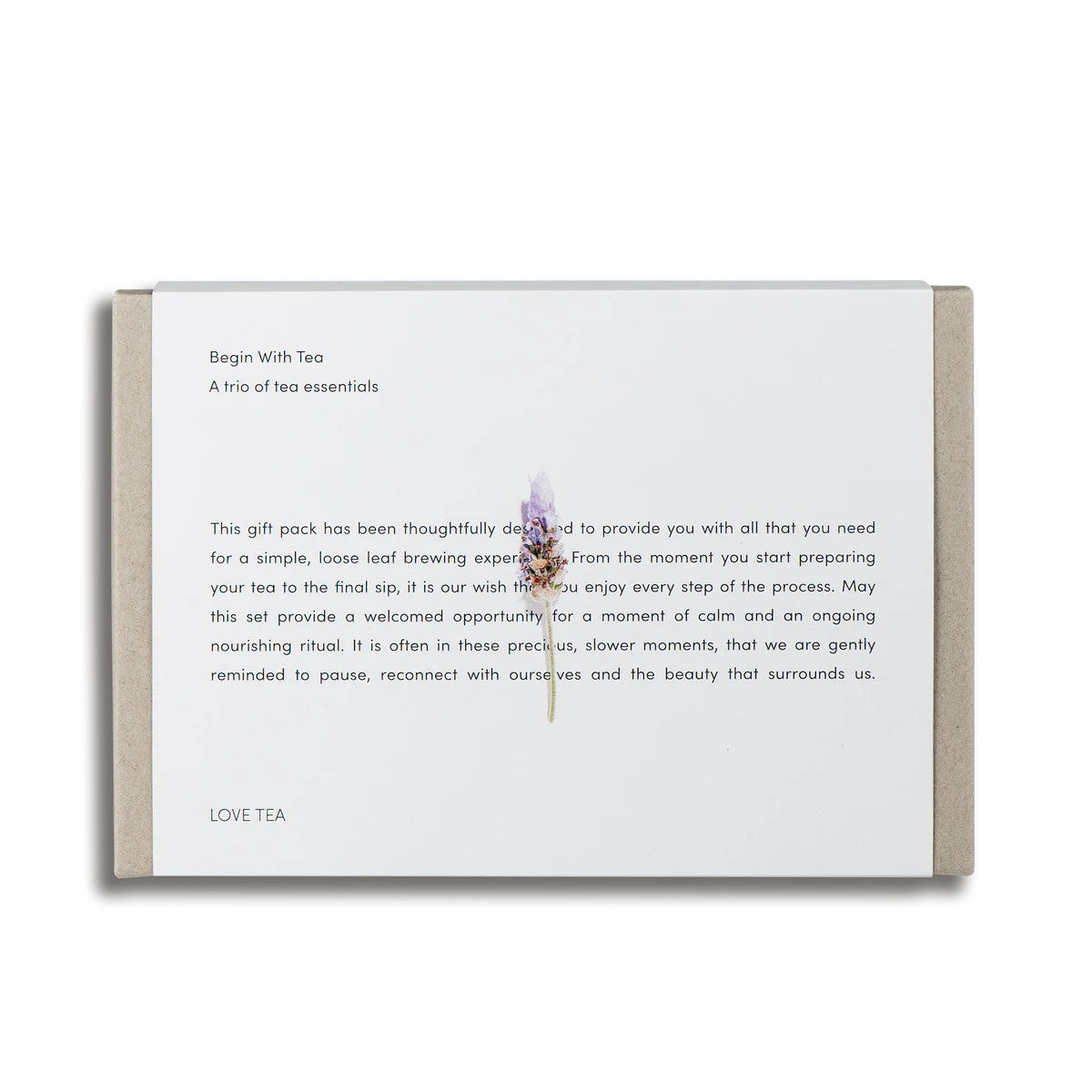 This gift pack has been thoughtfully designed to provide you with all that you need for a simple, loose leaf brewing experience. From the moment you start preparing your tea to the final sip, it is our wish that you enjoy every step of the process.