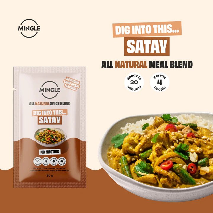 Create a healthy and fuss-free satay stir-fry, whipped up within 30 minutes. Mingle's Satay Stir-Fry spice blend is super versatile and can be cooked with any type of protein and any range of veggies to create a delicious, healthy meal!