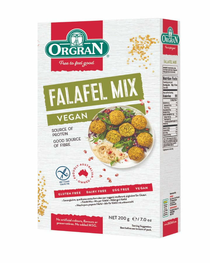 Orgran Falafel Mix is a quality product produced from a blend of natural gluten free traditional pulses and ingredients.