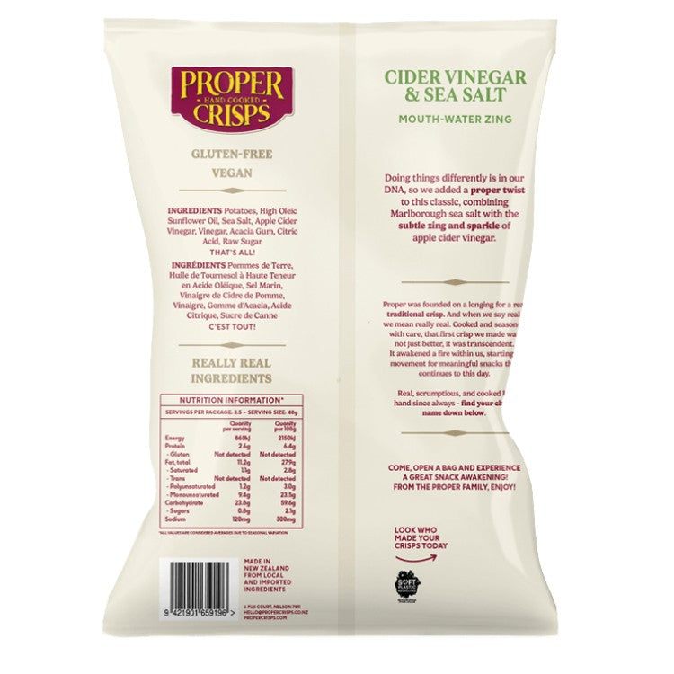 Potatoes, High Oleic Sunflower Oil, Sea Salt, Apple Cider Vinegar, Vinegar, Acacia Gum, Citric Acid, Raw Sugar