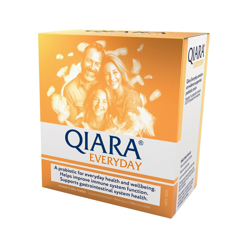 Qiara Everyday is an easy-to-take probiotic, proven to support gastrointestinal health and help restore the balance of good bacteria in our digestive system, which results in improved digestion, regular bowel function and improved general wellbeing.
